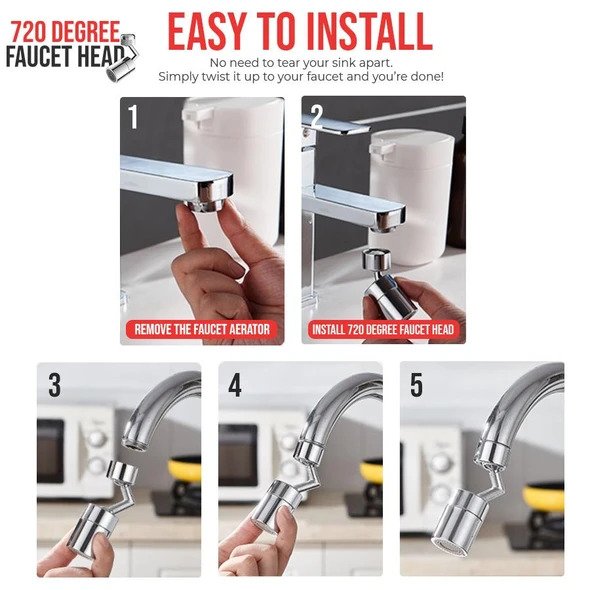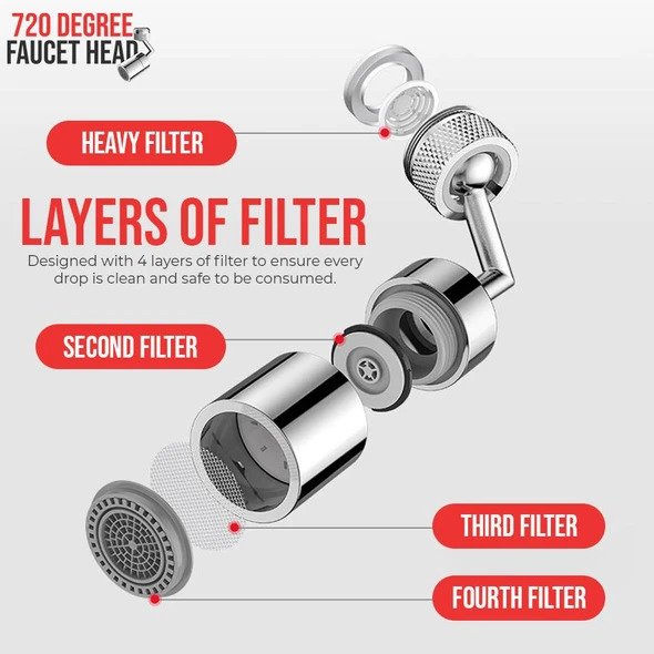 - IL PACCHETTO COMPRENDE1x testa del rubinetto da 720 gradi