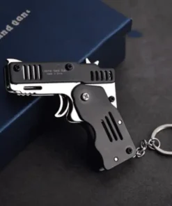 Il portachiavi giocattolo con pistola giocattolo pieghevole in elastico mini interamente in metallo ha le seguenti caratteristiche del prodotto: