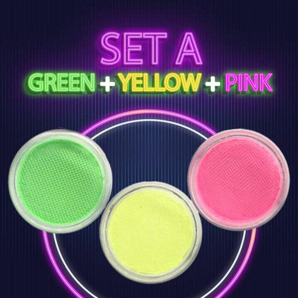 Set A (Giallo + Rosa + Verde); Set B (Blu + Viola + Verde)