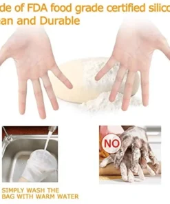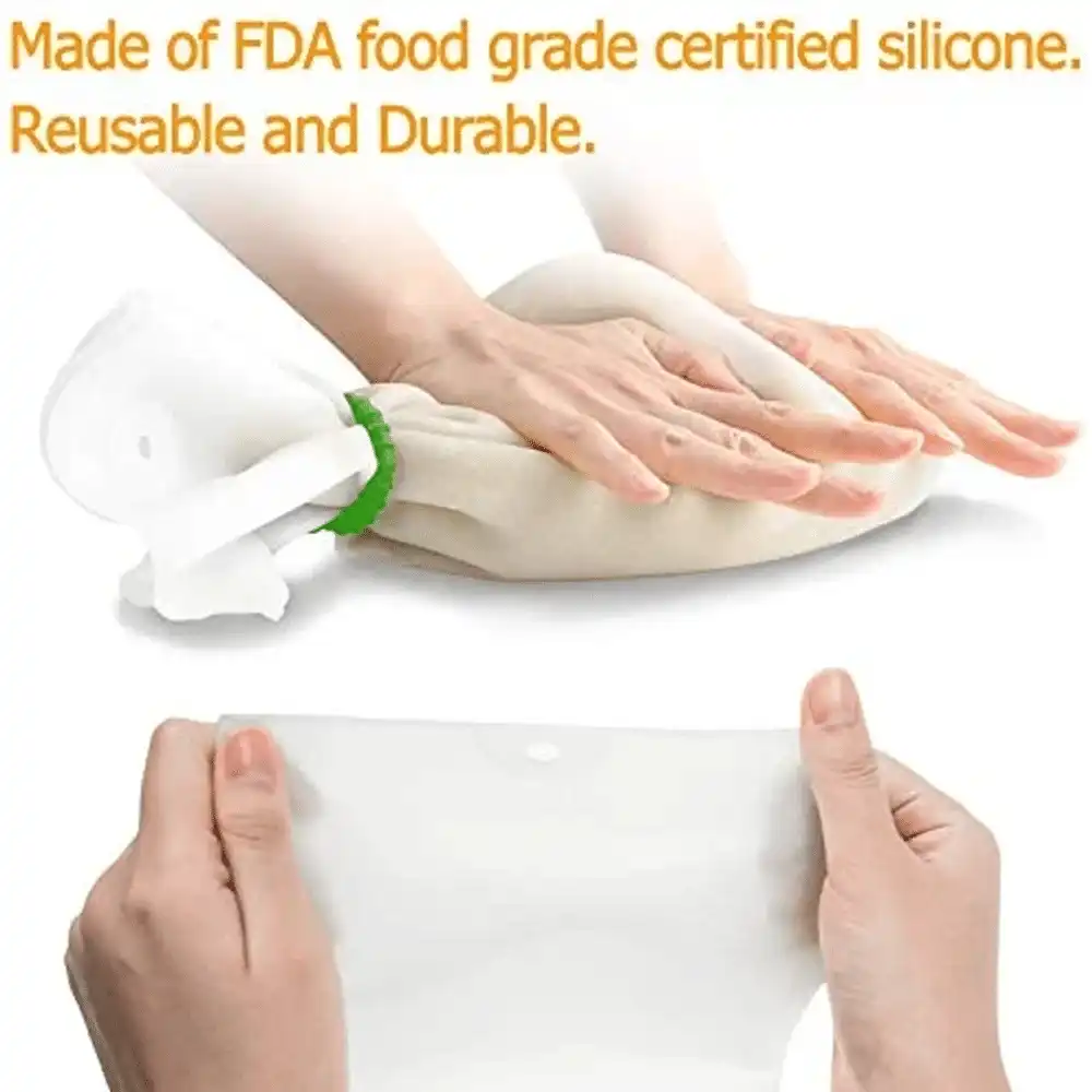 - Un accessorio indispensabile nella tua cucina. Con questo miracoloso sacchetto per impastare, puoi aggiungere ingredienti come farina, acqua, uova, mescolare tutti insieme, chiudere il sacchetto e iniziare a impastare. Ciò impedisce alla farina di schizzare ovunque. Per marinare carne o pesce, versare gli ingredienti, chiudere il sacchetto e riporre in frigorifero. Può essere utilizzato anche per spremere frutta e verdura per preparare marmellate