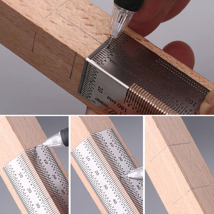 CONTENUTO DELLA CONFEZIONE: righello di precisione per la lavorazione del legno a due forme × 1